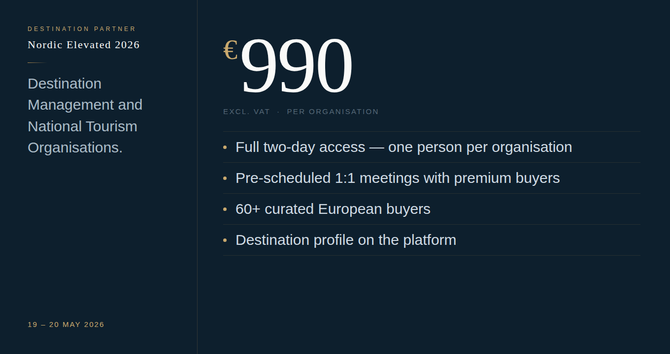 We believe the Nordic region is one of the most compelling destinations for high-end travellers today, and we are committed to making that case to the right audience. This event is our way of doing that at scale, together.